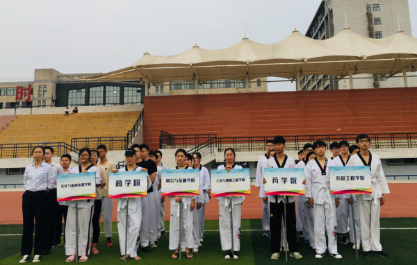 本次比赛由通识教育部、校团委联合主办,跆拳道俱乐部具体承办,比赛项目分为女子单人、男子单人和混合团体,其中个人品势表演以动作的完成程度与观赏性为评分标准,团体品势表演以动作的整齐程度与完成程度、观赏性为评分标准。共吸引来自各二级院系30多名选手参赛。