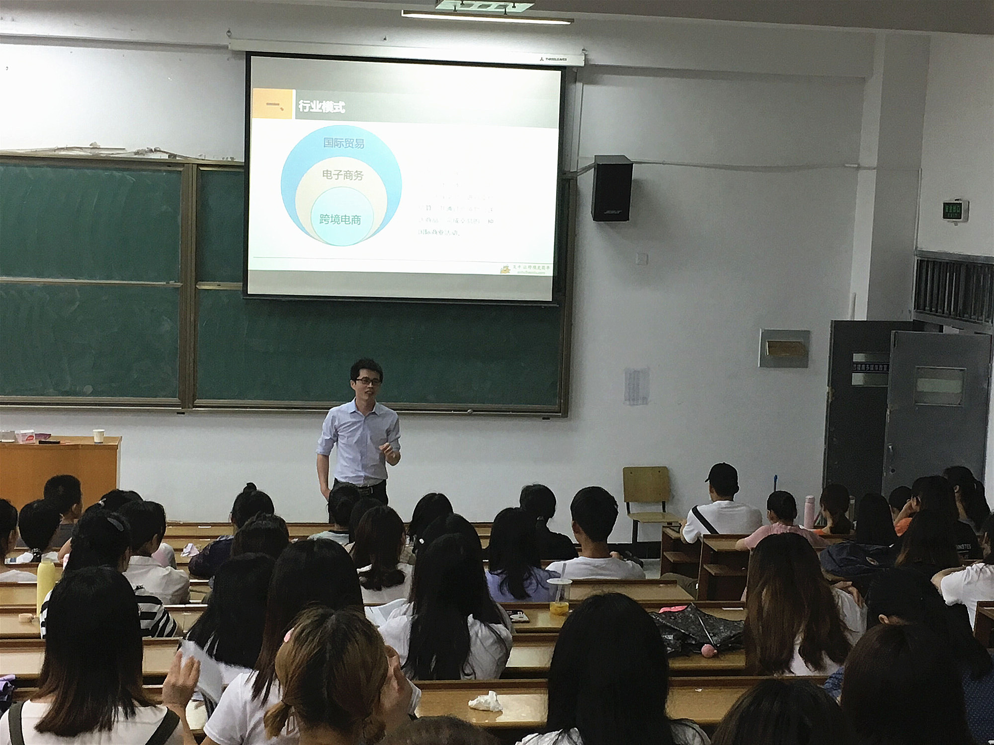 本网讯(通讯员:张咪迪)6月18号上午,应外国语学院的邀请,安徽昊牛跨境电子商务有限公司的徐林副总经理进行了题目为《跨境电商业态与个人职业匹配》的精彩讲座。讲座由外院副院长王志宏主持,外国语学院16级和17级商务英语本科师生共计一百余人共同聆听了本次讲座。
