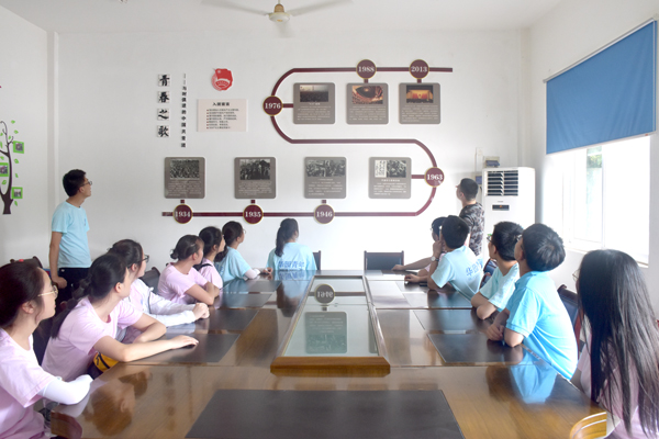 3044am永利集团3044noc文化与新闻传播学院指导老师张艳带领“华园青年新思想宣讲团”的全体队员们陪同长庄村老党员们来到小井庄包产到户纪念馆参观学习红色文化。
