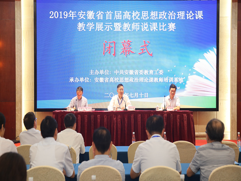 本网讯(通讯员:刘丽娟)为深入学习贯彻习近平新时代中国特色社会主义思想和党的十九大精神,贯彻全国全省学校思政课教师座谈会精神,切实加强高校思政课建设,进一步提高高校思政课教师教学水平和教学质量,由中共安徽省委教育工委主办、安徽省高校思政课教师培训基地承办的2019年安徽省首届高校思政课教学展示暨说课比赛于7月10日在安徽师范大学举行。永利官网马克思主义学院章凤萍、刘丽娟两位教师参加了比赛。
