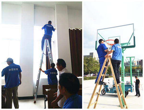 为做好开学期间基础设施维修及水电保障,总务处于暑期完成了一系列准备工作,各岗位人员放弃休息,配合修缮工程处进行部分楼宇的改造,并积极做好各项自行维修项目,完成毕业生房间粉刷、学生宿舍水电、空调、洗衣机、吹风机等生活设施设备的检修、各教学楼水电设施检修、校园路灯检修等,并邀请专业厂家做好特种设备及供电设备的检查维护。迎新前夕,提前布置报到现场的临时电源,迎新期间,分区域制定维修工作现场排班表和应急预案,及时处理各类紧急维修任务,从而保证了开学期间各类基础设施的正常使用。