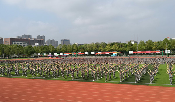 在表演专业教师李泽玉的精心编排和教官的严格要求下,韵律操方阵的同学珍惜每一分钟训练时间。明快奔放的动作,新颖别致的造型,挥洒出青春风采,体现力与美的结合,展示了华园学子青春魅力和韵律操运动特有的时尚活力,同时也充分展现出华园学子团结奋进、积极进取的精神风貌。