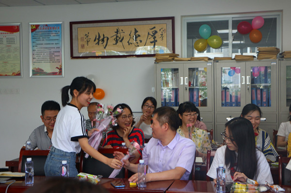 最后,全体教职工一起观看学生们精心准备的“师恩情深,感谢有你”视频。财会与金融学院院务助理团干部向全体教职工献花。