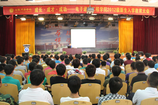 本网讯(通讯员 储金华,摄影 张志彦)为了从起点抓好对2012级新生的素质教育工作,9月5日上午,电子通信工程学院在学校大礼堂召开了2012级新生入学教育大会。此次大会以“成长 成才 成功”为主题,由电子通信工程学院副院长操宏华主讲,电子通信工程学院全体辅导员及800余名2012级新生聆听了讲座。