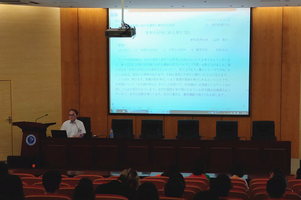 本网讯(通讯员:翟闪 赵明)9月21日下午,外国语学院邀请日本爱知淑德大学博士生导师山内啓介教授来永利官网,作了题为“日本の元号に見る漢字文化(从日本年号看汉字文化)”的专题讲座。日语系全体师生参加了讲座。