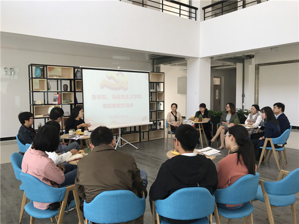 随后,参会人员针对“思政工作如何更好地融入到课程教学、育人环节等工作”进行了交流,共同探讨如何在教学中加入思政元素,培养学生的民族精神和时代精神,注重对学生的正面引导,弘扬社会主义正能量。董丽娟给大家讲述了什么是课程思政、思政课与课程思政的区别,提到专业课中融入思政元素,关键是抓住“点”,并举例说明专业课中如何融入思政元素。商学院教师王娅莉、郭娟也针对“管理学原理”、“国际经济学”等课程的课程思政提出了自己的见解,会场气氛热烈。