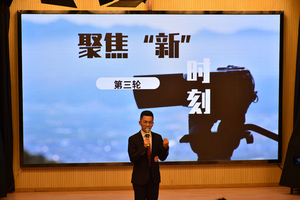 为激发学生对新闻事业的兴趣,鼓励学生创新媒体传播方式,本次大赛重点考察参赛选手现场报道、新闻采访、即兴评述的能力。大赛共有三个环节——“现场进行时”、“新闻会客厅”、“聚焦新时刻”。第一环节“现场进行时”,记者们带领观众重温国庆阅兵现场、分析国庆旅游景区的交通状况以及欣赏美轮美奂的城市灯光秀。第二环节晋级的十位选手俩俩搭配抽取指定话题互访,每位选手不仅要在30秒内剖析话题提出问题,还需临场应变及时追问、总结报道。整个环节紧凑有序,选手采访金句不断,真正做到眼观六路、耳听八方。最后一个环节“聚焦新时刻”是本次比赛最为激动人心的一场角逐,晋级的六位选手对设定的新闻事件进行复述和现场评述,选手们流利的表达以及鲜明的观点让观众们啧啧称赞。最终新闻学专业的许钰涵获得一等奖。