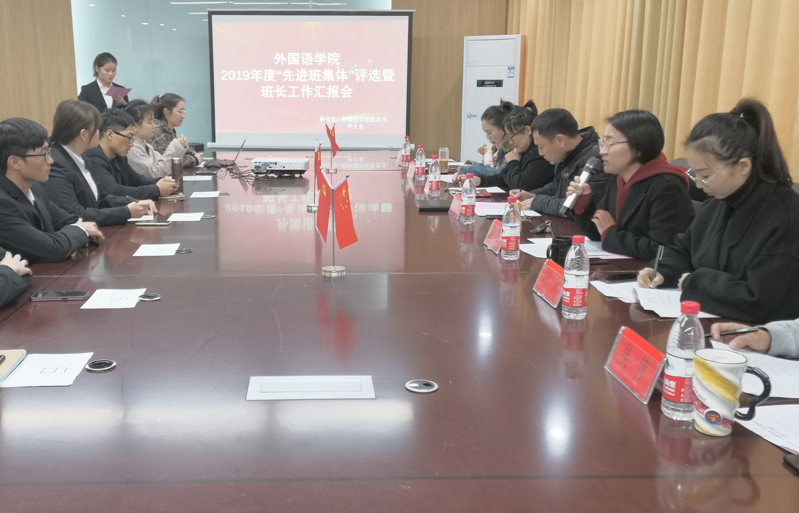 本网讯(通讯员:陈丽)为进一步加强班级管理,交流班级重点工作和特色工作,提高班长的工作能力和水平,结合校级先进班集体评选,外国语学院11月21号开展了2019年度先进班集体汇报暨班长述职汇报。外国语学院副院长杨光、学管秘书、全体辅导员听取了班长们的汇报。