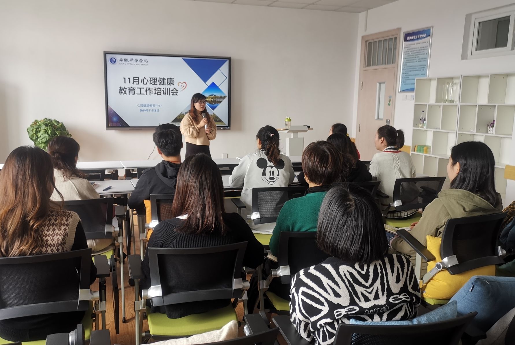 本网讯(通讯员:司晓毅)为扎实推进“不忘初心,牢记使命”主题教育工作,深入贯彻落实教育部《高等学校学生心理健康教育指导纲要》,3044am永利集团3044noc开展了“不忘初心、牢记使命”主题教育暨11月心理健康教育工作的培训会。学生工作处处长助理凌晨、各二级学院心理联络员、新入职辅导员、心理健康教育工作专、兼职心理咨询师参加了本次培训。