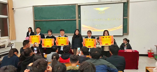 会议伊始,学生会主席团成员总结了2019年以来的工作成果,根据学生会日常部门、个人考核制度,评选出2019年度优秀部门、优秀部长及优秀干事。随后,学生会各部门以PPT和视频的方式分别从部门风采、部门职能、工作成果、工作反思、未来展望五个方面对2019年工作进行总结汇报,展现了学生会团结一致的精神风貌和积极进取的精神态度。