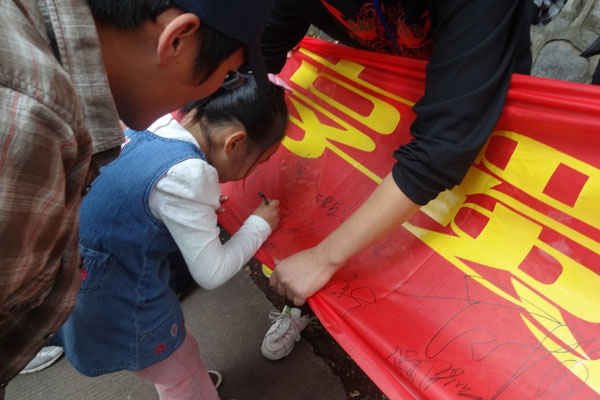 持续了一天的环保登山活动于当天下午的四点半落下帷幕。夕阳西下,一个个的背影渐渐井然有序的离开了名人湖的草坪。