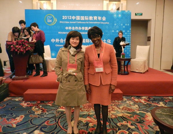 在年会期间,永利官网代表参加了中英高等教育国际合作办学论坛,中外合作办学圆桌会议,就合作办学中的问题与参会代表进行了广泛交流,拜访了美国宾夕法尼亚州克拉里恩大学校长助理、协理副校长乔斯琳•甘特博士,了解国际交流的相关政策,寻求合作途径,并向他们介绍永利官网在国际合作方面的情况。