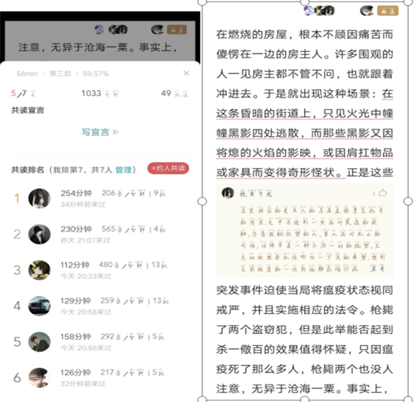 该活动分期分主题开展,结合当下热点问题,围绕学生素质教育,设定不同主题,邀请推荐人根据主题推荐书籍,学生报名参与线上读书分享,学院汇集每期读书分享和读书笔记。抗疫是最生动的教材,通过疫情反思生命,首期主题设定为“生命教育”,首期书目推荐人为柯姗姗。她为电院学子推荐了《鼠疫》、《你想活出怎样的人生》两本书。自活动上线以来,引起学生们广泛关注和讨论,并积极报名参与。学生们认真的记录阅读笔记,开展线上分享和讨论。17级电气本1班的沈智玄同学说,“千人共读”活动主要是希望同学们在疫情期间通过一本书来寻找志同道合的朋友,让大家不孤单,通过分享和交换内心感受,让大家更快乐。
