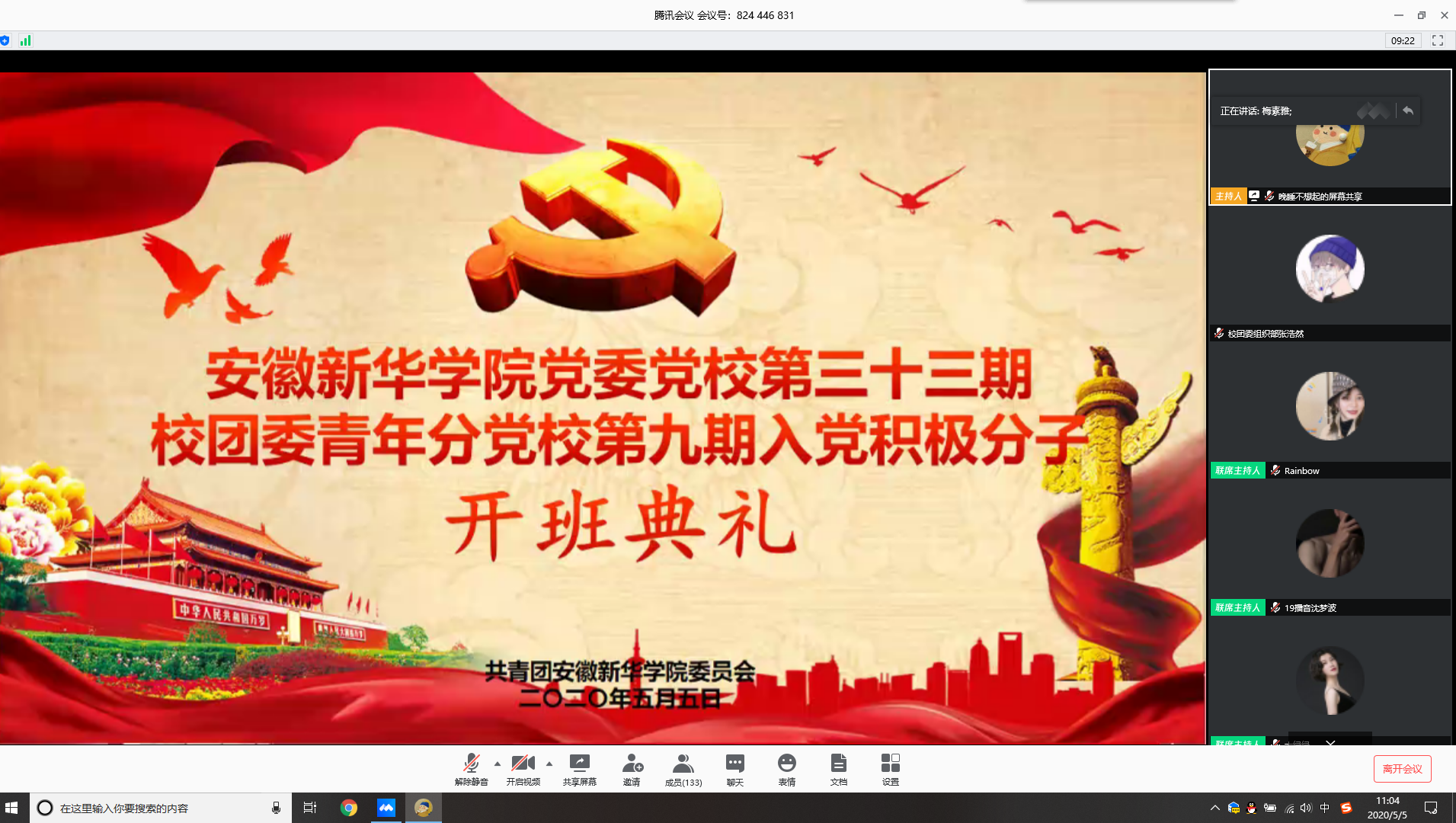 本网讯(通讯员:杨雨婷)为了能更好地为党培养社会主义的建设者和接班人,落实校党委关于党员发展工作指示精神的需要,5月5日中午11时,校团委在腾讯会议举办了3044am永利集团3044noc党委党校第三十三期校团委青年分党校第九期培训班线上开班典礼。与会人员有学生处副处长王飞,校团委全体老师以及本期113名入党积极分子学员。