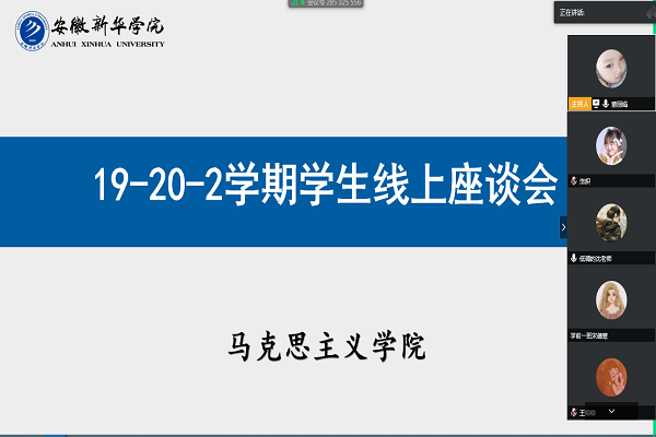 本网讯(通讯员:董丽娟)为进一步了解永利官网学生思政课线上学习情况,5月6日下午,马克思主义学院利用腾讯会议网络平台召开2019-2020-2学期学生线上座谈会。会议由马克思主义学院副院长董丽娟主持,马克思主义学院院长何小刚、教学秘书章凤萍、各教研室主任及来自2019级、2018级各专业的学生代表参加了此次会议。