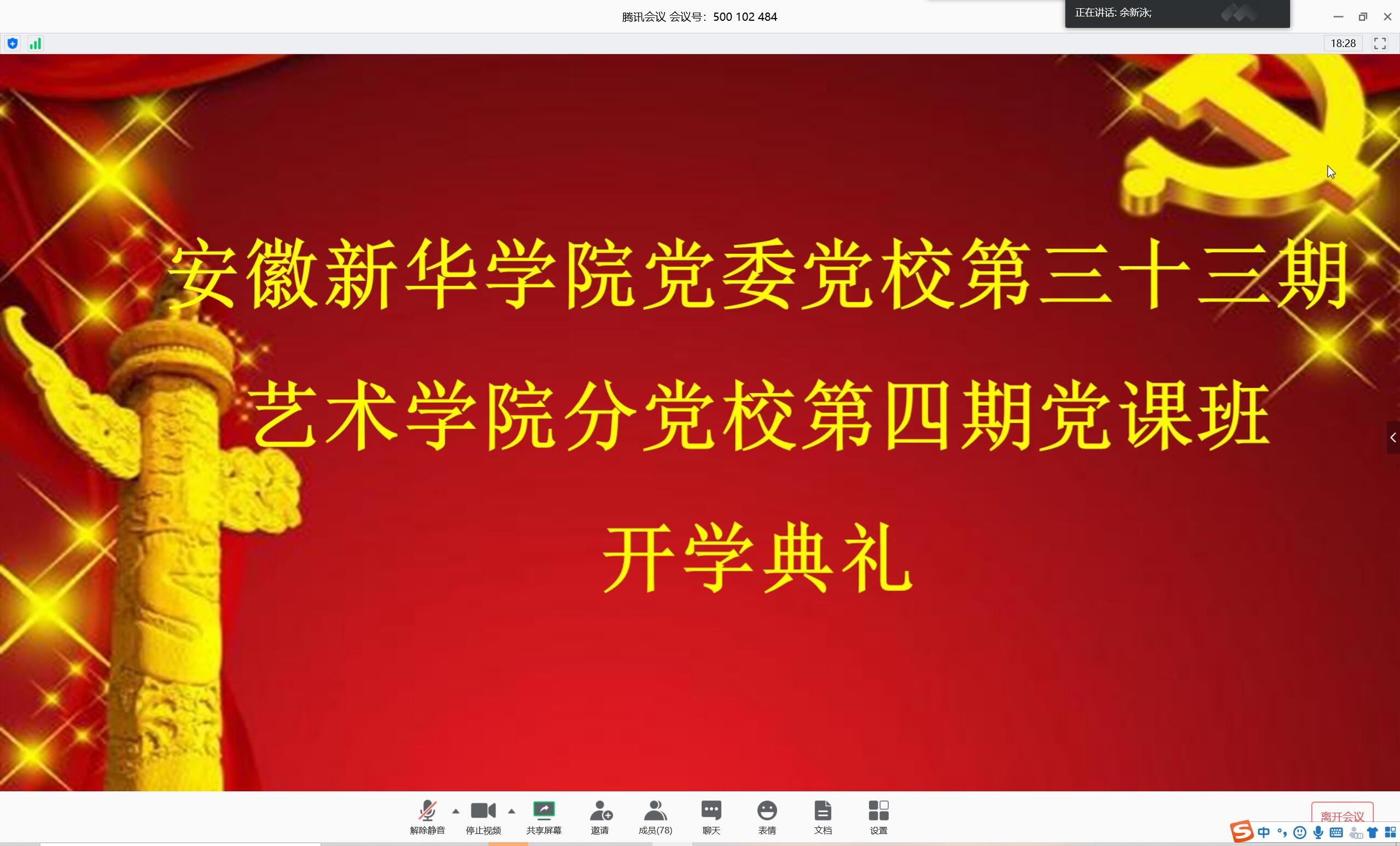 本网讯(通讯员:高扬)为加强对入党积极分子的培训,做好艺术学院党员发展工作,3044am永利集团3044noc第三十三期艺术学院分党校第四期开班典礼于2020年5月7日中午在腾讯会议线上开展。艺术学院党总支书记许存福、总支副书记郑妮、宣传委员刘刚、组织委员黄梦、纪检委员余新泳、组织员张大勇、第一学生党支部书记张小菊、第二学生党支部书记高扬和71名党校学员参加了此次典礼。