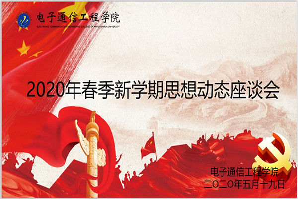为深入了解学院第一批错峰返校学生思想动态,传达学校、学院对同学们的关心,5月19日19点,电子通信工程学院召开线上学生思想座谈会。电子通信工程学院党总支副书记、行政副院长柯姗姗,团总支教师副书记、辅导员代表张婷婷及学生代表参加会议。座谈会上,学生代表结合《2020年春季新学期学生思想动态调研话题》积极发言交流,张婷婷就同学们关心的问题做了细致解答,柯姗姗最后做总结讲话,她说,这次疫情是场大考,不仅考国家治理,学校治理,也考学生个人治理能力,尤其是学生自我管理自我教育自我服务自我监督的能力,这个时候必须团结一心,彼此信任,共同努力,才能彻底战胜疫情。