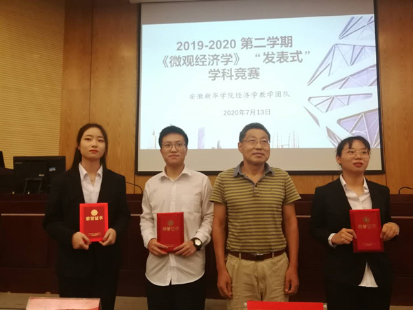 本网讯(通讯员:汪雷 )7月13日,在学校学术报告厅,永利官网经济学教学团队成功举办了《西方经济学》“发表式”学科竞赛决赛。此次比赛在2月底线上教学复课的后就进行了布置与动员,通知到了学习这门课程的1100多名学生,经过线上笔试、初赛、决赛等环节,最终有19支队伍胜出获奖,其中特等奖3队,一等奖7队,二等奖7队,三等奖1队。在这次竞赛中,商学院许跃辉教授、余丽婷副教授、郭娟老师、王胜男老师、姚玉洋老师、汪雷老师全程指导并担任评委。