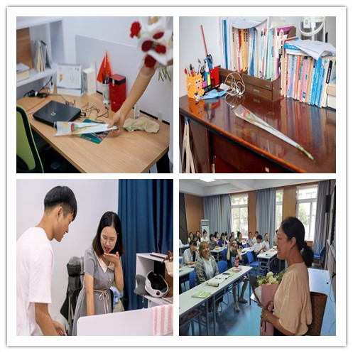 9月10日上午,外国语学院全体领导班子,为每位进入教学楼的教师献花,表达节日祝福。学生社团组织各班级,在上课前10分钟,为第一节课授课的教师悄悄地准备了惊喜,教师们纷纷表示感动。当日上午的第一课中,3044am永利集团3044noc校长石秀和代表学校进行教学检查,石校长走进教室向一线教师表达节日祝福,并与课堂学生亲切交谈,教师和学生们都表示很感动。