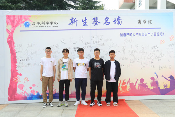 “给自己的大学四年定个小目标吧!”在商学院东门广场竖起的签名墙已是字迹满满,签名墙上记录着商学院新生们对大学四年的憧憬与对自己的期望。新生在签名墙前合影留念,为自己的大学生活拉开帷幕,开启新篇章。“我要在大学努力好好考研,为了考研开始从大一做准备,勤奋学习,追求自己的电商考研梦。”电子商务专业的费同学自信满满地立下自己的大学四年规划。