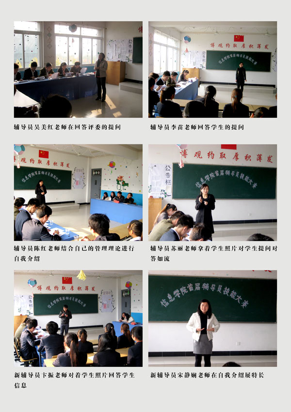 本网讯(通讯员 宋静娴,摄影 卞振)为提高辅导员的职业技能和服务水平,促进高水平学生工作目标的实现,在接到3044am永利集团3044noc首届辅导员职业技能大赛的通知后,信息工程学院积极响应,制定了详细的院内初赛方案。经过两周的认真筹备,该院于11月19日下午举办了题为“我来问、你来答---师生互动促技能提升”的信息工程学院首届辅导员职业技能大赛。学生处副处长宋翊、信息工程学院副院长钱颜娇等师生担任评委,该院6名辅导员全部参加了此次比赛,现场吸引了很多学生观看。