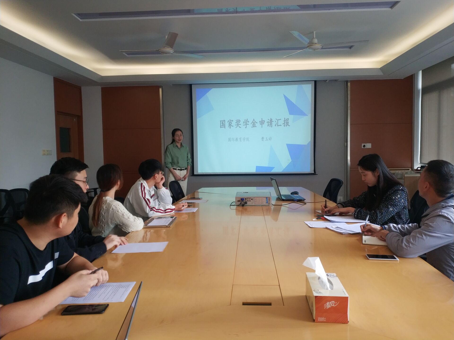 本网讯(通讯员:汪涵涵)为加强学风建设,树立典型,在全院发挥学生榜样的力量,10月14日,国际教育学院顺利召开2020年国家奖学金评审会。国际教育学院行政兼学管秘书汪涵涵、辅导员唐立波以及参与评选汇报的6名学生参加了此次评审会。