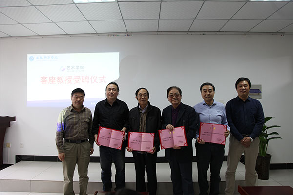 首先,许存福宣读了聘任文件并对受聘教授进行了详细的简历介绍,经学校研究批准,特聘请安徽大学艺术学院硕士生导师陶合民先生、安徽省首届非遗代表性传承人刘继成先生、中国美术家协会会员李广越先生、安徽省工艺美术学会副会长张为民先生出任艺术学院客座教授。