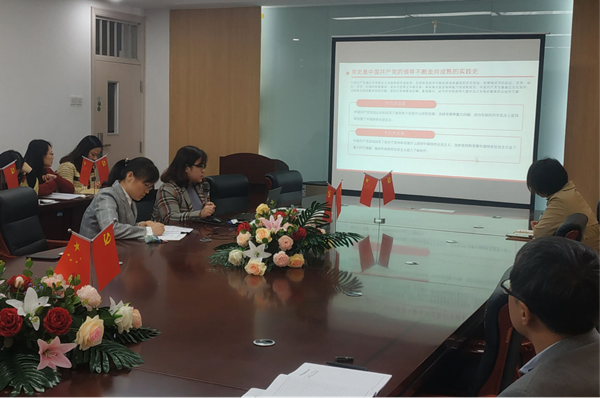 首先,郭晓菊带领大家学习“四史”相关内容。习近平总书记指出,只有坚持思想建党、理论强党,不忘初心才能更加自觉,担当使命才能更加坚定,要把学习贯彻党的创新理论作为思想武装的重中之重,并同学习党史、新中国史、改革开放史、社会主义发展史(简称“四史”)结合起来。“四史”内容各有侧重,但整体讲的就是中国共产党为人民谋幸福、为民族谋复兴、为世界谋大同的实践史,中国共产党的领导是“四史”的主线。接下来,全体参会人员进行“网上重走长征路暨‘四史’学习教育竞答”。竞赛题分“英雄”、“复兴”、“创新”、“信念”四个篇章,对应党史、新中国史、改革开放史和社会主义发展史。