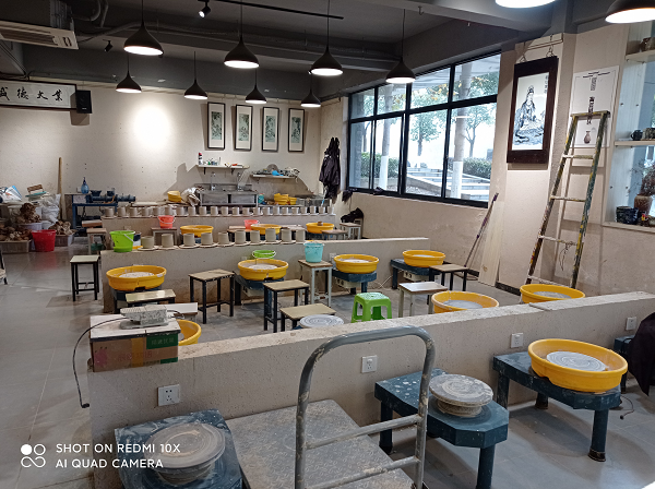 首先参观合肥财经职业学院陶艺馆,负责人朱水江介绍总体概况,该馆主要为艺术设计专业、广告艺术设计专业等4个专业提供陶艺实训,同时面向全校的陶艺爱好者提供陶艺体验。详细介绍陶艺教学从练泥、拉坯、印坯、利坯、晒坯、刻花、施釉、烧窑、彩绘、釉色变化的全过程。