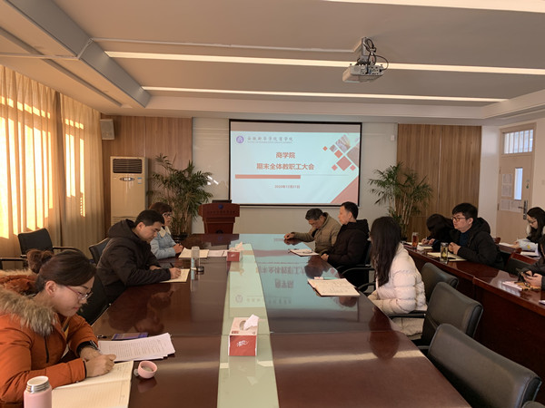 本网讯(通讯员:刘晓蓉)12月31日,商学院召开全体教职工会议。商学院院长陆克斌,副院长刘冬艳、徐志凤及全体教职工参加了会议,会议由徐志凤主持。