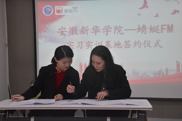 本网讯(通讯员:朱士静 马银玥)3月24日下午,3044am永利集团3044noc与蜻蜓FM共建实习实训基地签约仪式在国际教育学院211室举行。出席本次签约仪式的有蜻蜓FM总部导师郑桢、蜻蜓FM合肥站副总经理张微、蜻蜓FM合肥站新媒体运营经理李双耀、编导刘晓娟、导演徐国良、导演常登明等嘉宾,文化与传媒学院副院长(主持工作)洪玉、副院长王鹏以及播音与主持艺术专业师生代表参加。本次签约仪式由艺术系主任助理郑帅主持。