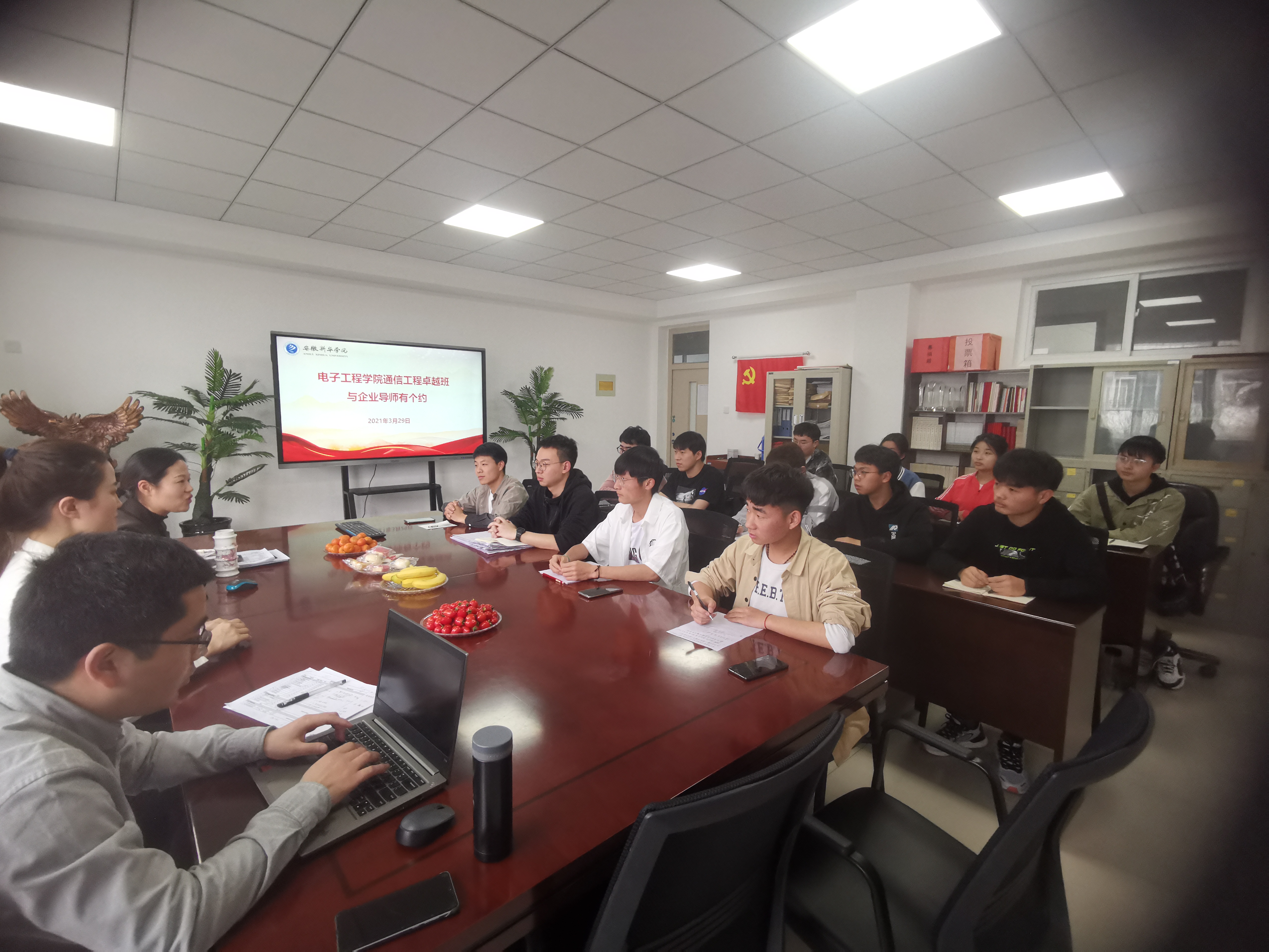 本网讯(通讯员:杨钊)3月29日,电子工程学院/智能制造学院邀请联通(安徽)产业互联网研究院工业互联网行业总监、联通政企解决方案工程师武涛开展了“5G商业模式及应用”的讲座,副院长汪青、辅导员夏菁老师以及2020级通信工程卓越班学生共计20余人参加了本次讲座。讲座由汪青主持。