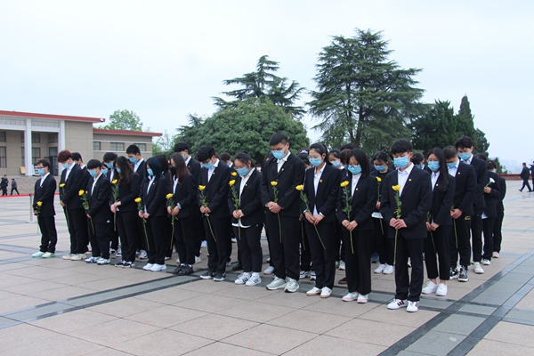 大蜀山烈士陵园内墓碑高耸,气氛庄严肃穆,在药学院团总支书记、学管秘书兼行政秘书赵影的主持下,全体学员面向烈士墓碑默哀,向为新中国的成立献出自己宝贵生命的英烈们寄托深深的哀思。随后,各位学员向革命先烈献上素雅的菊花,深切悼念为国献出生命的英雄先烈,表达了对烈士们的敬仰与钦佩。