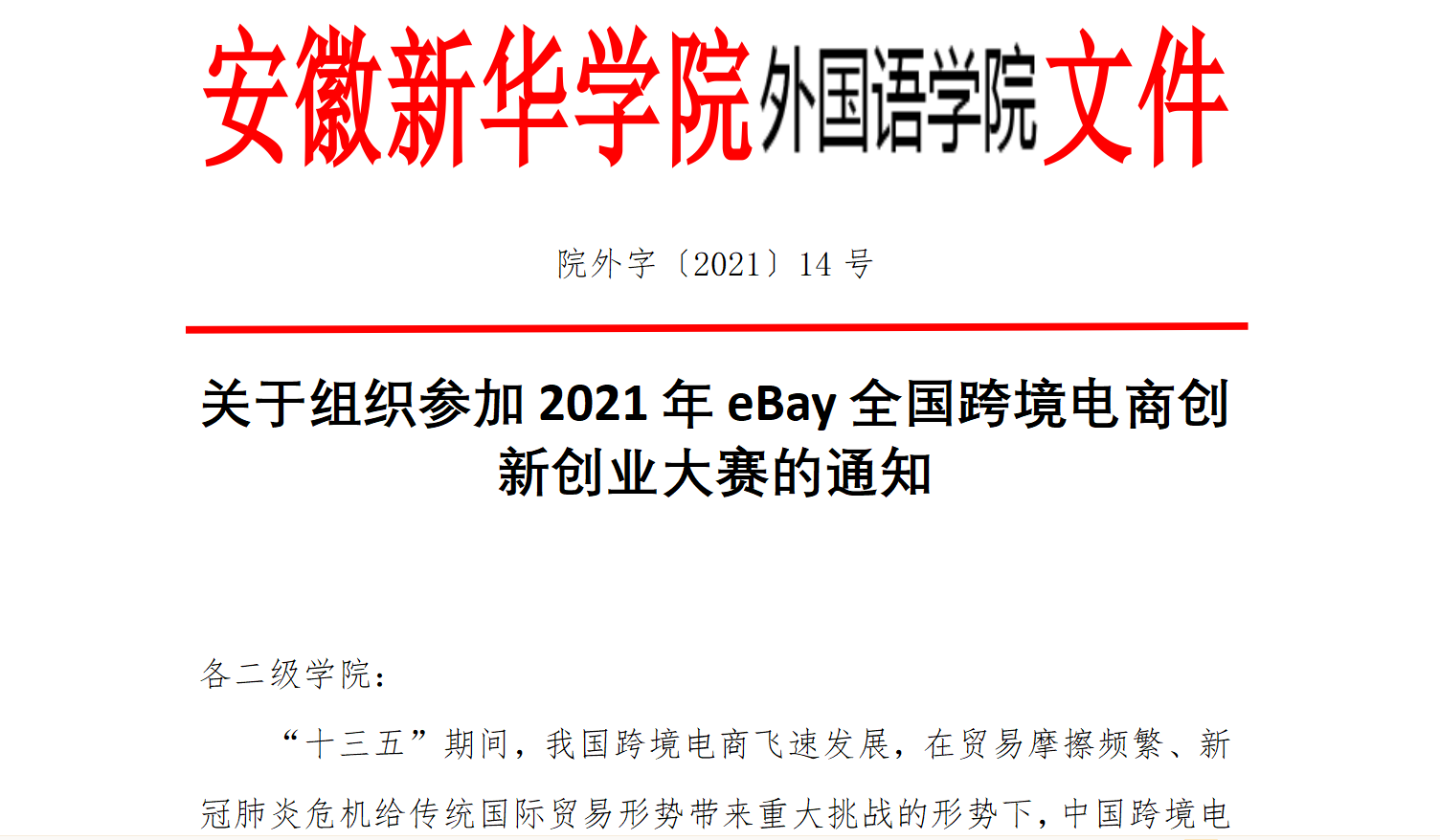 外国语学院组织2021年eBay全国跨境电商创新创业大赛报名工作