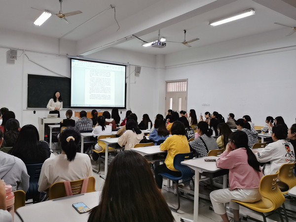 此次分享邀请2021年考研成绩优秀的三位毕业生:康雨琪、石红燕和陈婉婷,为大家分享考研路上的经验和故事。首先,王婷老师以“学业规划、人生路径”为题,作精彩细致的动员,她为同学们分析考研形势与动态,鼓励同学们选择考研,为将来的优质就业打下基础。随后,报告会上,优秀毕业生通过讲述亲身经历,为同学们传授学习和求职经验。康雨琪、石红燕和陈婉婷先后向学弟学妹们分享自己考取中国科学技术大学、浙江工商大学、浙江师范大学硕士研究生的历程。她们刻苦努力的学习态度和专业学习的经验让在座的同学深受启发。石红燕提到:“考研没有那么简单,我大四之前就看完了十几本翻译理论的书,笔记做了四五本。两年的时间,即使是周末,也坚持每天六点起床。语言靠的就是厚积薄发,毫无捷径可走。”