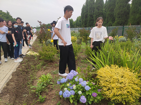 启动仪式结束后,风景园林种植基地负责人李屹楠带领师生进行实地参观,风景园林专业学生为全体师生作植物讲解,预备党员也纷纷认养相关植物。城市建设学院第二学生党支部闫昊同学在园林基地内认领一棵植物后表示:在此次活动中,通过老师和同学们的介绍,他观察到园林基地内自然的美妙,体会到劳动教育的重要性和荣誉感,并表示会和其他党员同学一起,将此次学到的精神与思想传播到身边的每一位学生中去。