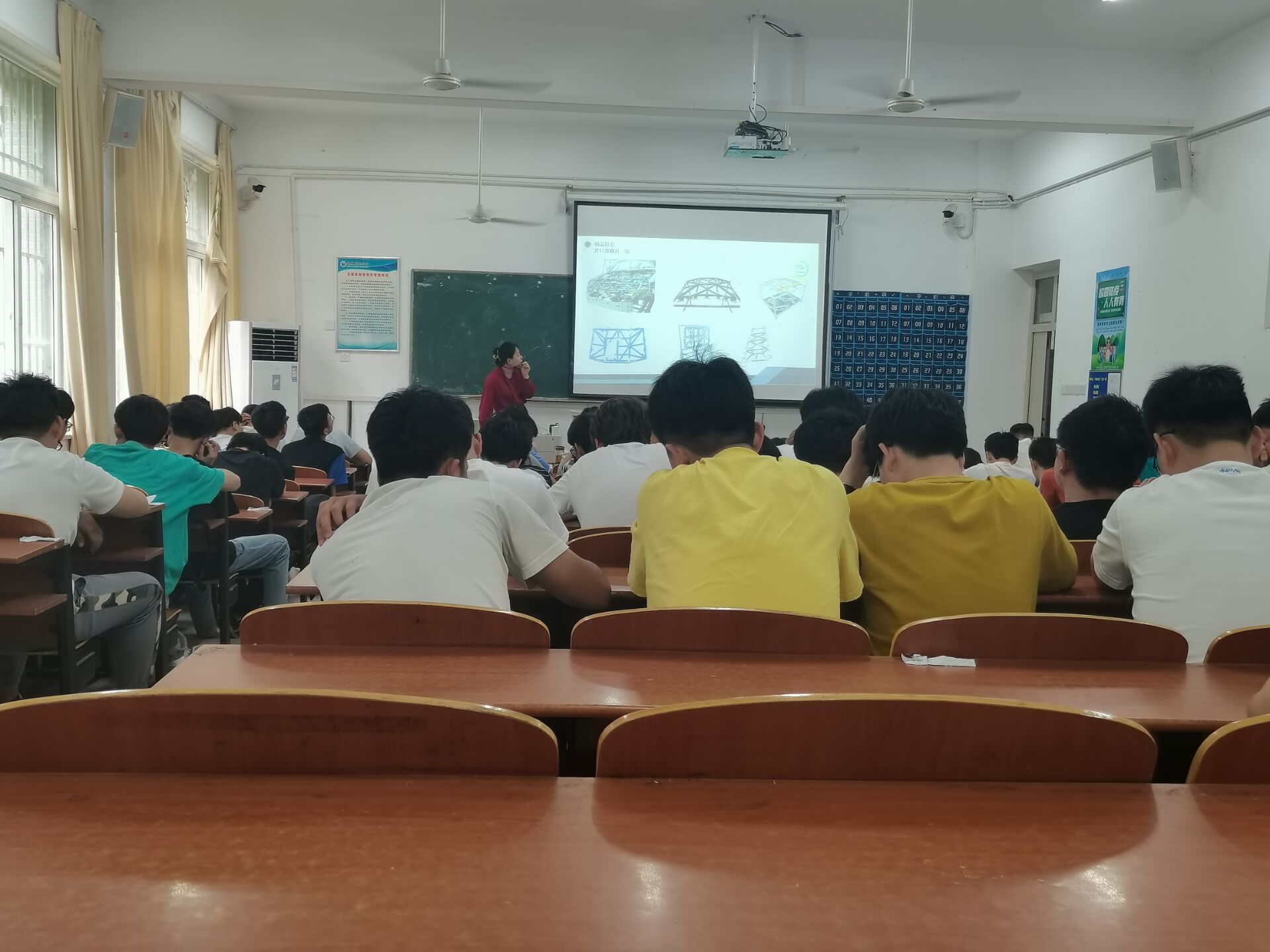 会上,王山首先对安徽尚展模具工业有限公司及目前他所从事的专业、研究领域进行介绍。并对冲压(内饰)片件检具、OCF检具、螺钉车(整车)检具、功能性主检具等案例进行经验分享,同时对一些新型材料的应用和柔性测量支架以及检具辅助测量和无线数据采集应用等知识内容进行讲解,让学生切实了解书本以外的专业知识,扩展学生知识面。