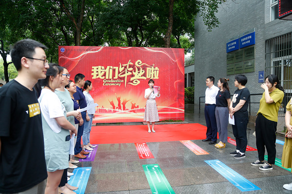 为表达对毕业生的离别之情,为毕业生带来仪式感,16日,学院在教学14号楼前举办学院毕业典礼,行政副院长罗振林、教学副院长汪青、主管秘书、各系主任应邀参加。