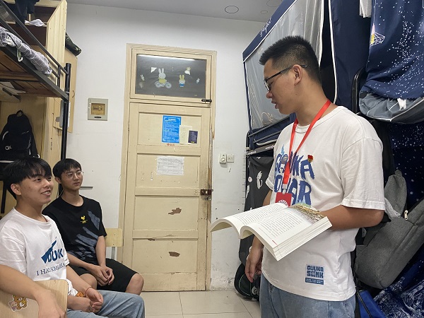 6月6日,宣讲团深入16号楼407宿舍。宣讲团成员蒯正锋结合党史学习教育动员大会精神,生动讲述革命先烈张秋人在牺牲前仍不忘保护党的机密,在狱中坚持学习,鼓励狱友们斗争到底、坚持不懈指导狱外党组织的工作的故事。该宿舍同学在宣讲结束后表示:“通过宣讲活动,使我了解到革命先烈伟大的事迹,同时也使我更深刻的认识党,明确自己的奋斗目标。我觉得我们作为青年学生,应该肩负起时代赋予我们的责任,努力学习科学文化知识,多方面充实自己,真正做到全心全意为人民服务。”