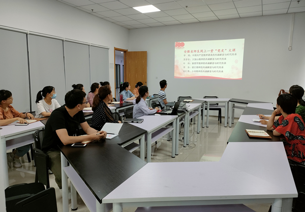 本网讯(通讯员:姚晶晶)6月18日下午,通识教育直属党支部组织党员参与观看全省师生“同上一堂‘党史’大课”活动,在会议室集中观看直播、在线学习。