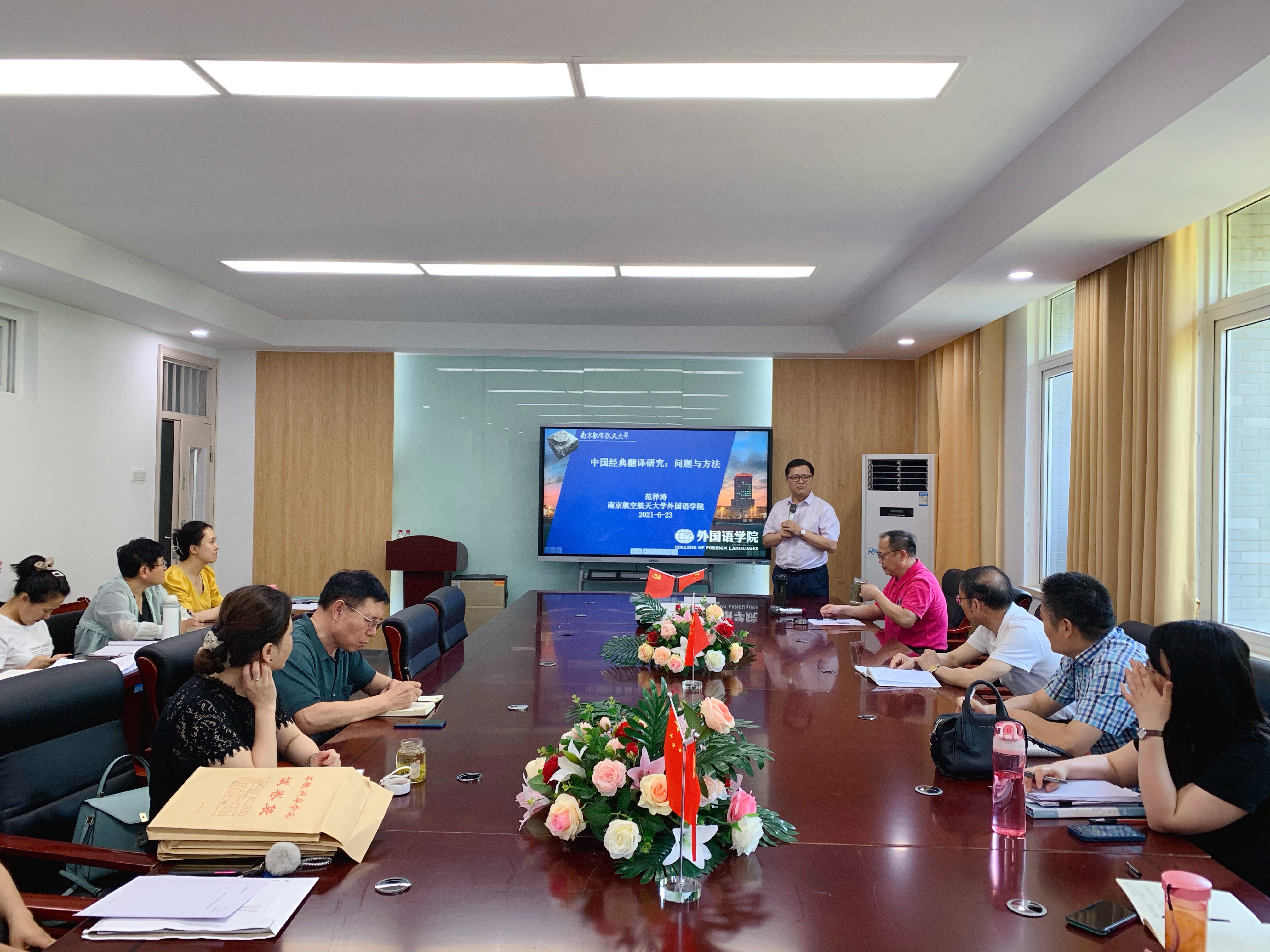 本网讯(通讯员:佘月月,李怡嘉)6月23日,应永利官网外国语学院邀请,南京航空航天大学外国语学院院长范祥涛教授来永利官网作主题为“中国经典翻译研究:问题与方法”和“ 国家项目申报说略”两场学术讲座。学科带头人周平教授主持本次讲座。外国语学院全体教师聆听讲座。