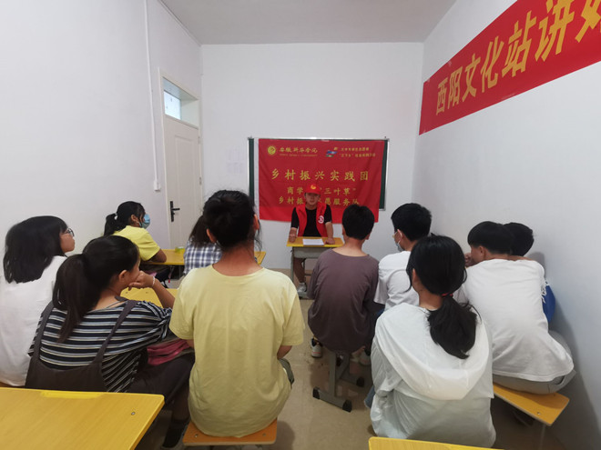 本网讯(通讯员:金保忠)为激发学生爱党爱国情怀,引导学生了解中国共产党光辉的奋斗历程,传承红色精神,7月9日,商学院“三叶草”乡村振兴志愿服务团队结合西阳镇文化站开展“讲好党史故事,传承红色精神”党史宣讲活动。