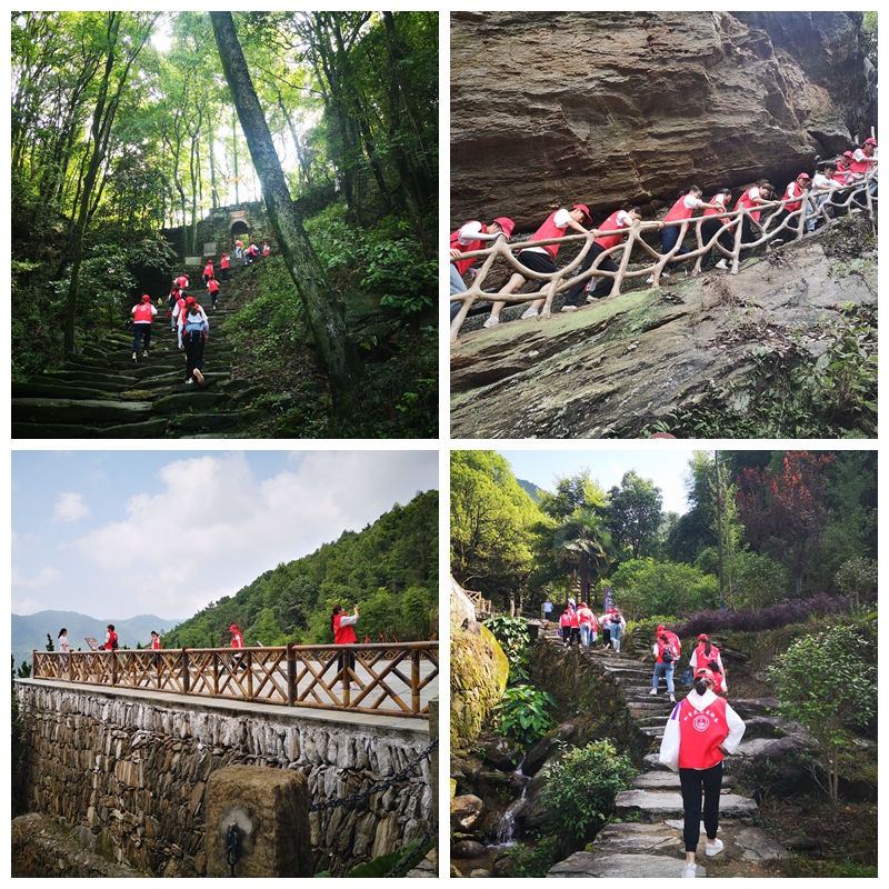 随后,赵影带领队员们体验红军足迹,领略红色江山风采。面对坡度为70度的天梯,365级的阶梯,社会实践团队成员们不惧困难,克服恐惧,一步步爬上攀龙门,来到“最上一乘”,参观关帝庙委员会旧址,追寻那段红色记忆,深切体会到红军当年作战的艰难处境,内心生发出无尽的敬佩之情,不禁感叹今日幸福生活来之不易。
