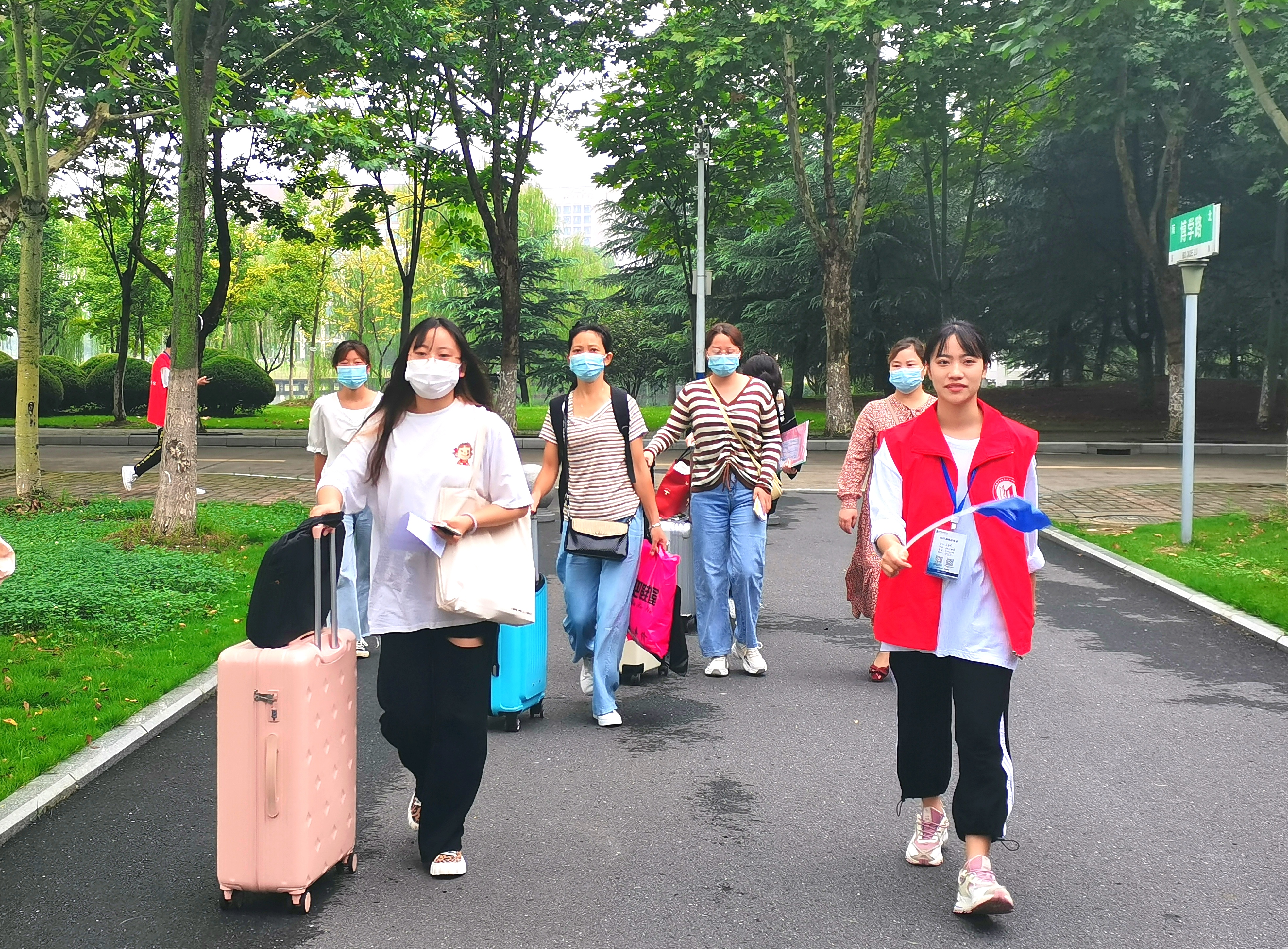 为做好新生接待,迎新期间志愿者们积极协助新生搬运行李、指引寝室入住、办理校园一卡通,他们服务热情、有问必答,做好新生的“引路人。“感觉被团宠。”2021级新生陈欢说道。面对陌生的城市心里有一些紧张,到学校后一切忧虑全部打消了。进校门开始,志愿者们便无缝对接帮助他报到和入住。