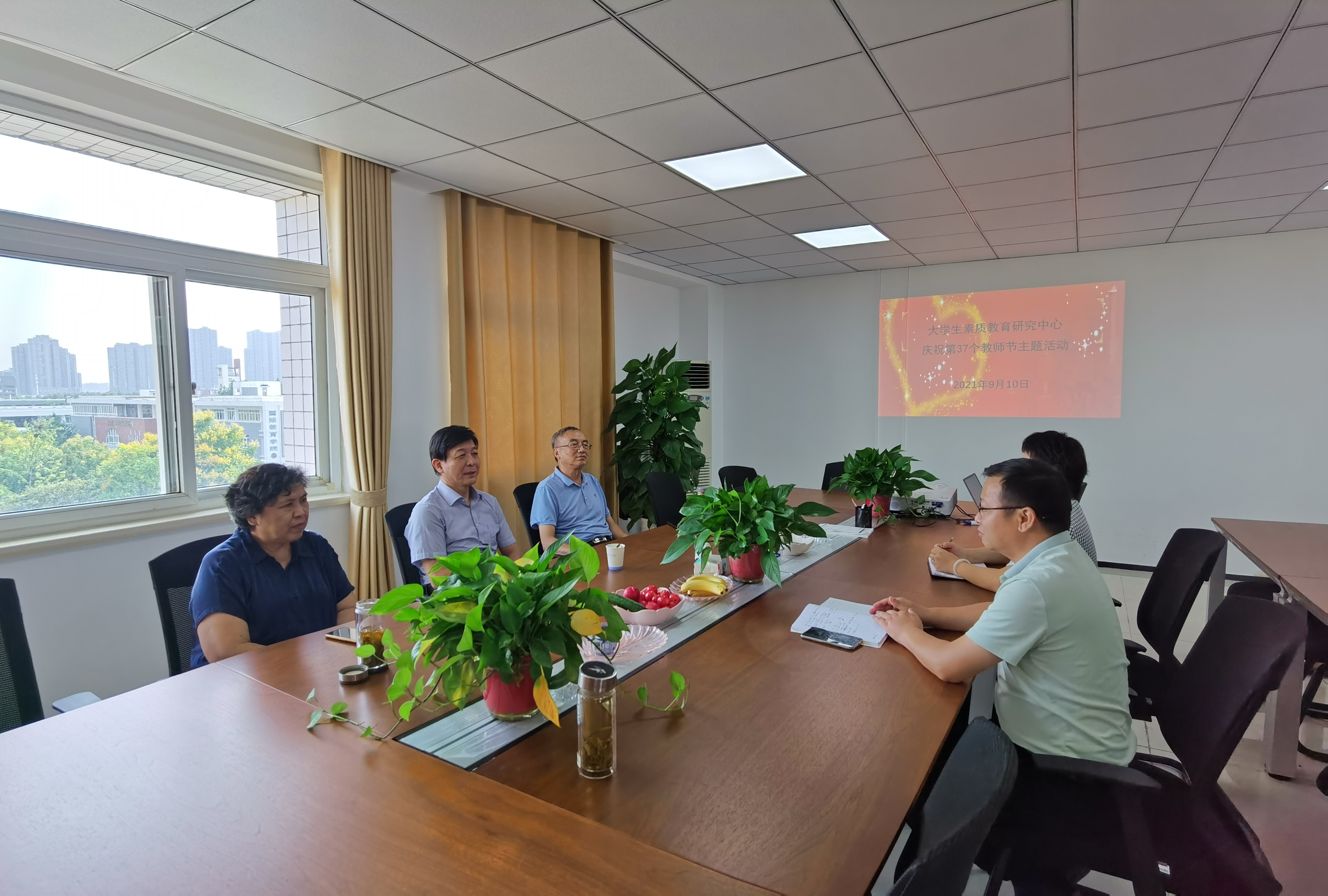 中心专职研究员朱镜人教授和卓爱平教授分别从教师节设立初衷、意义及发展历程、当前教师队伍发展现状、国家对高等教育事业发展规划等方面进行了主题的报告和分享。中心主管林斗秀和李彩平分别结合各自工作岗位和成长历程,谈了教师职业理想,表示要秉持教育的初心和使命,将个人发展和学校发展有机结合,坚持梦想,不懈奋斗。