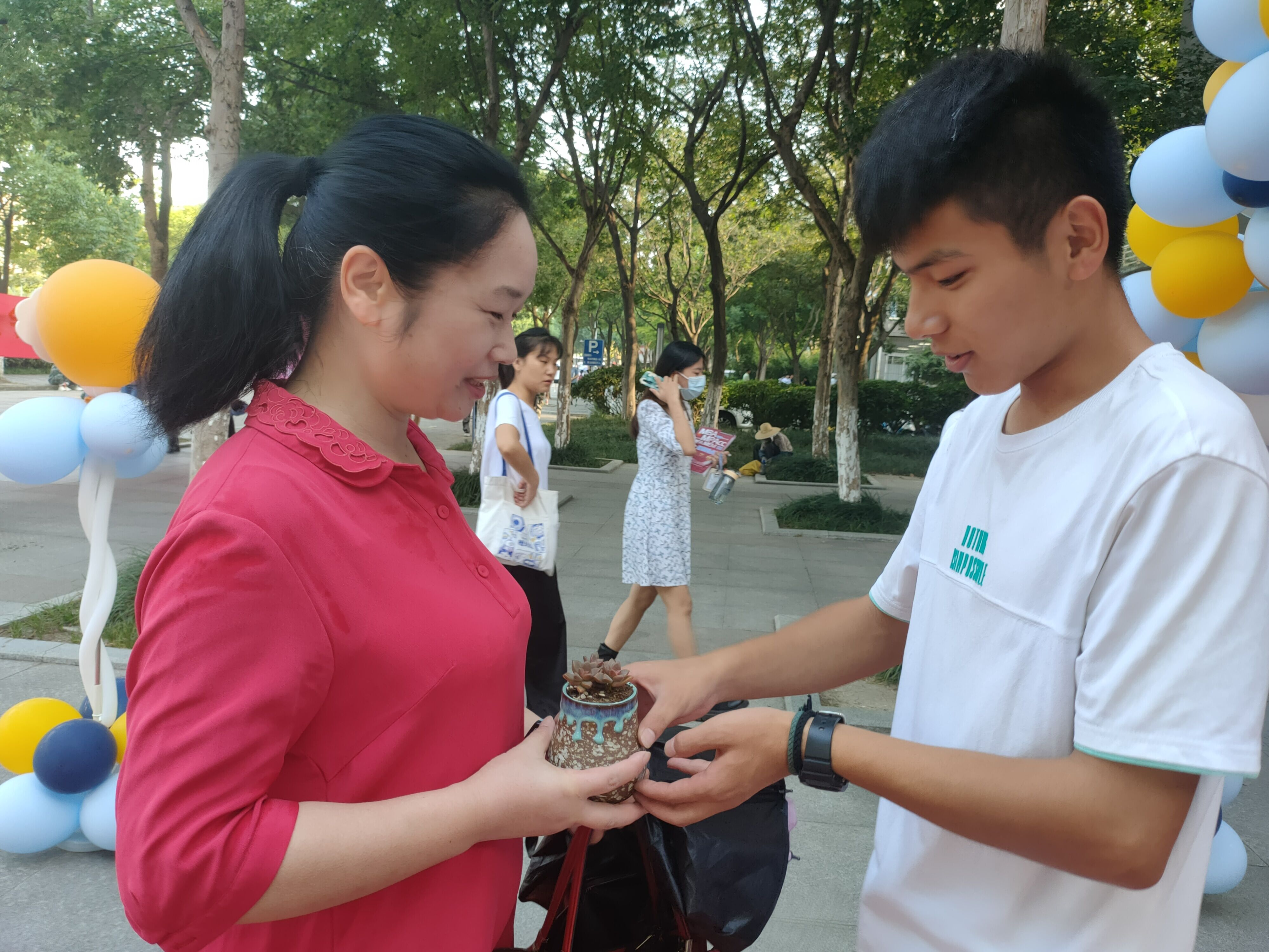 9月10日上午7时,大数据与人工智能学院院门口充满欢声笑语。学院学子们为教职工们送上鲜花和盆栽,以表对老师们的祝福与感恩。