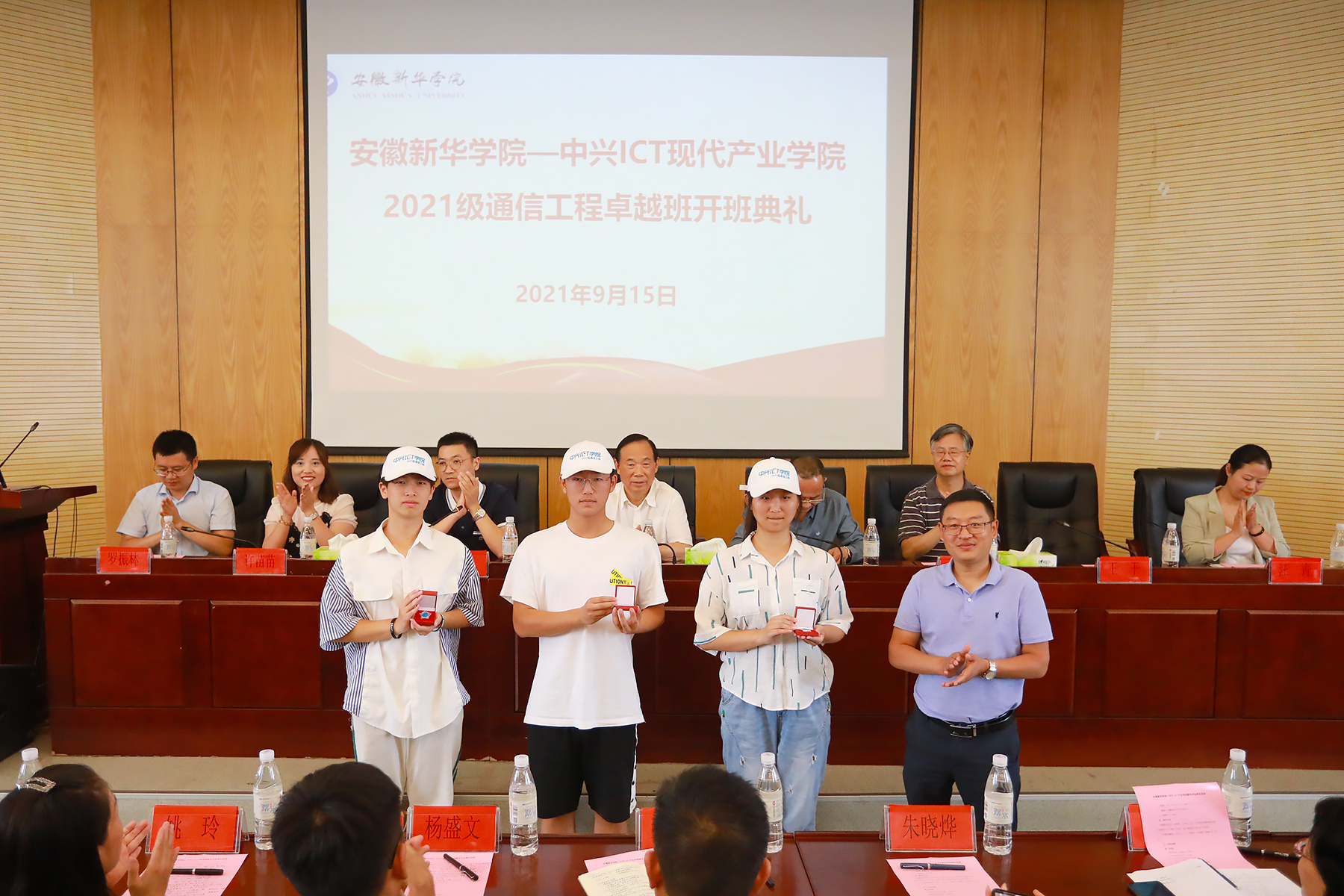 随后,电子工程学院/智能制造学院院长李晓辉和中兴教育管理有限公司安徽省运营总监、3044am永利集团3044noc产学研副院长王干分别为班级授旗、授班级徽章。