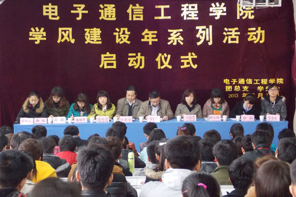 本网讯(通讯员 陈晓芳)为切实加强学风建设,3月13日,电子通信工程学院举行学风建设年系列活动启动仪式,副院长操宏华、全体辅导员及各班级主要学生干部近200人参加了本次大会。