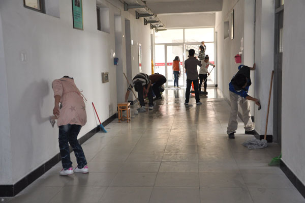 此次卫生清扫,主要针对三个方面问题:一是卫生死角,二是小广告,三是宣传画、标语等修复。土木与环境工程学院教学楼是一期建成的,设备老旧,卫生死角多,有的地方由于位置特殊,几乎一直没被打扫过,清理难度大。为达到预期效果,该学院召开专题会议进行宣传布置。号召广大学生干部、学生党员行动起来,只为成功想办法,莫为失败找理由,破除“习惯成自然”的固有观念,以崭新的观念、较高的眼光重新审视我们的教学楼,多想方法,多做工作,让我们的教学楼变新、变美。会议将每一项工作责任到人,并商讨了具体的清理方案。