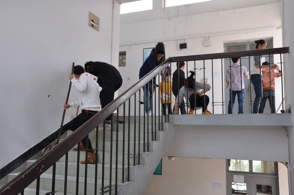 本网讯(通讯员 王修武)为促进校园环境建设,整治校园“五乱”,给广大同学营造良好的学习环境,以崭新的面貌迎接本科评估。3月9日,土木与环境工程学院开展了针对教学楼的卫生清扫活动。